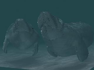 This photograph shows all the lighting effects that we are trying to implement in our final project. Caustics are clearly evident on the skins of the manatee. The addition of bumps on the muzzle and creases on the neck and fins can be modeled but would be easily simulated with the appropriate bump map. In addition there is alot of light scatter in the image although we probably won't attempt an accurate recreation of this effect.