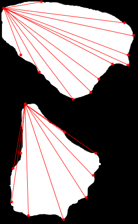 The wings were modeled using a NURBS on a plane. We wrote curve object to support cubic curves that would maintain C-2 continuity. Curve points can be specified arbitrarily and the control points automatically adjusts to maintain smoothness and C-2 continuity. We took measurements from pictures of actual butterfly wings to form the basic shape for our wing generation algorithm. The wing was broken down into a set of fundamental control points each specified by a angle and length from the butterfly's shoulder. The shape of the wing outline could be changed in three fundamental ways:
