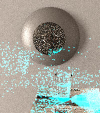 Our final image is generated using ~17,000 photons, with radiance estimates obtained for a point by sampling the nearest 20 neighboring photons.