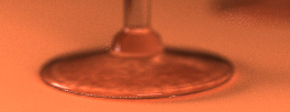 As it turned out, the final rendered scene made comparatively little (but noticeable) use of the major techniques implemented, i.e. photon mapping for caustics, volume rendering, and Fresnel glass. It would have been nice to have chosen a scene which more aggressively demonstrated those techniques. Also, I found the lighting of the original photograph very difficult to simulate, even with a real martini glass. Even with many tries, I was unable to obtain the correct lighting conditions in the rendered scene that gave the nice specular highlights off the base of the glass as seen in the photograph. Nevertheless, it was nice to see the yellowish reflection of the left window in the red liquid (upper-right corner of the middle glass) which was also present in the original photograph but at a different location. Also, the size of the "cone" of darkness in the middle of the liquid agrees with that of the photograph, i.e. a larger cone for the glass that is further away - this came out naturally as a consequence of the modeling.