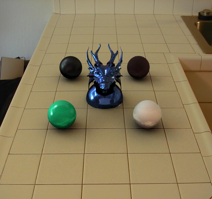 - recovering actual light information and position from the radiance map and using that to do photon mapping for caustics and indirect lighting; in fact Paul Debevec/Jonathan Cohen already have an unpublished algorithm that does this. I started to implement something similar, but ran out of time before I could incorporate it into my renderer.