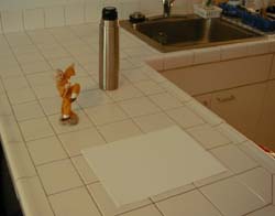 Here are the pretty pictures. This first set shows some (real) pictures of various random objects on the kitchen counter in my studio.