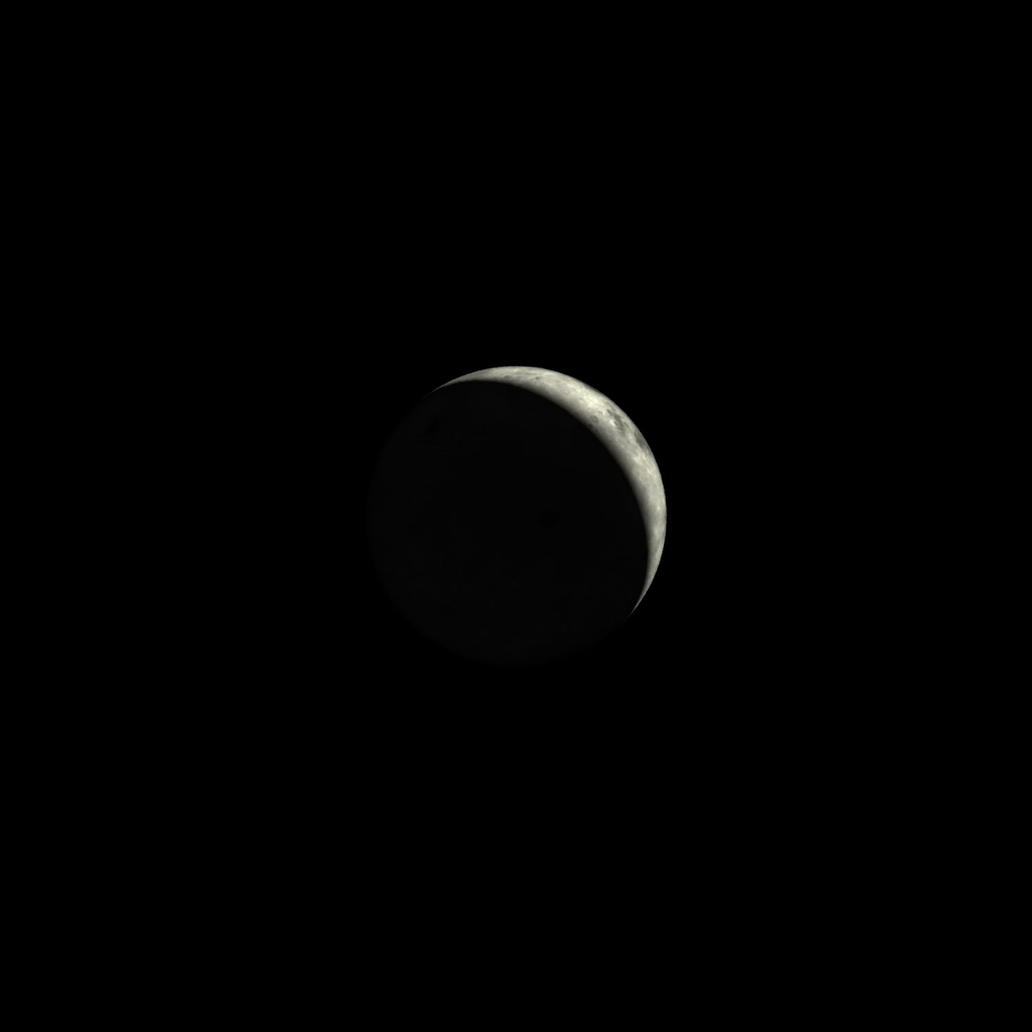 Here is a picture of a crescent moon with no stars. Notice the earthshine lightly illuminating the dark part of the moon. This is the moon that was in the sky on the day both of our intrepid night renderers were born.