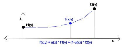 two splines f1 and f2 to define the displacement of the