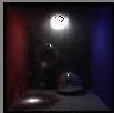 We were considering simulating the sky using a bright white directional light to simulate the sun and adding an environment map to try and capture the blue sky. To handle this situation without introducing excessive amounts of noise we changed the uniform sampling between the lights to use importance sampling to choose which light to sample. Unfortunately doing this actually increased the visual noise, because most of the time the darker sky was not sampled, but when it was it was very strongly weighted, so that some pixels were bright blue while the rest were unaffected. Below are pictures showing such a scene with and without importance sampling being used to choose which light to sample. For each pair, the first image is with 16 samples per light and the second is with 64 samples per light.