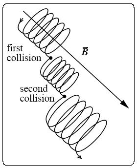 The voltage pushes electrons toward the magnetic poles, accelerating them to high speeds. Electrons in a magnetic field move in a special way: they are guided by the field. The electrons travel along magnetic field lines as if they were wires, circling around the lines in a long spiral as they go. They zoom along the field lines towards the ground to the north and south, until huge numbers of electrons are pushed down into the upper layer of the atmosphere, called the ionosphere.