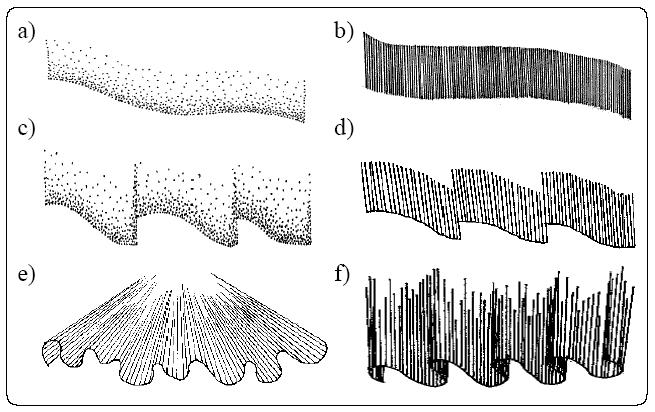 The boundaries as well as the internal layers of these sheets are modeled using sine curves. Hence, the starting points for the electron beams used in our simulations are obtained through the discretization of these curves. In our simulation strategy, folds are modeled by replacing portions of the sine waves by Bezier curves.