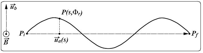 After we have found the projected straight line location on the curve, we generate a random azimuthal angle to perturb the z coordinate of the electron beam. The actual collision point is then the sum of two vectors, the vector from the last collision point to the projected straight line location and vector uB from the projected straight line location along the normal to the Bezier function value.
