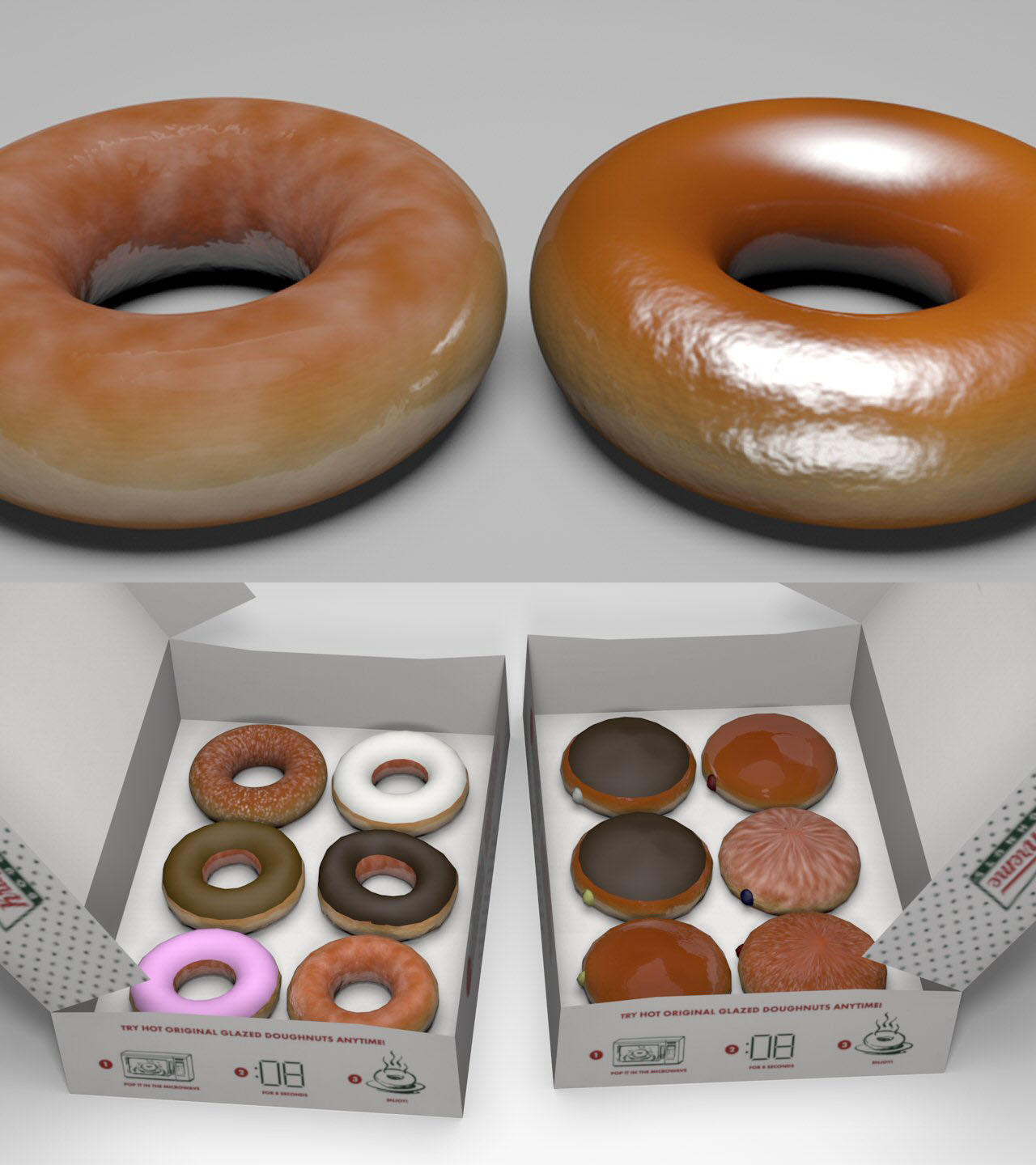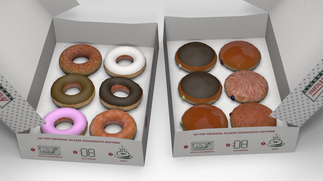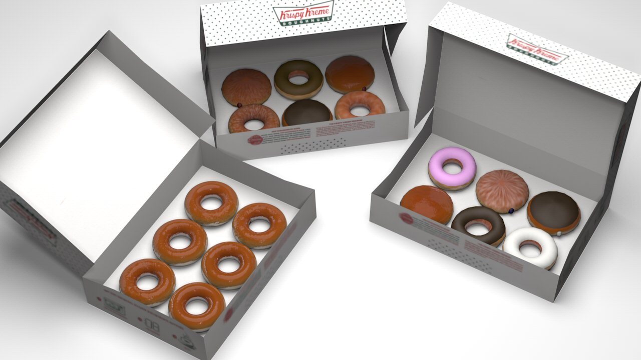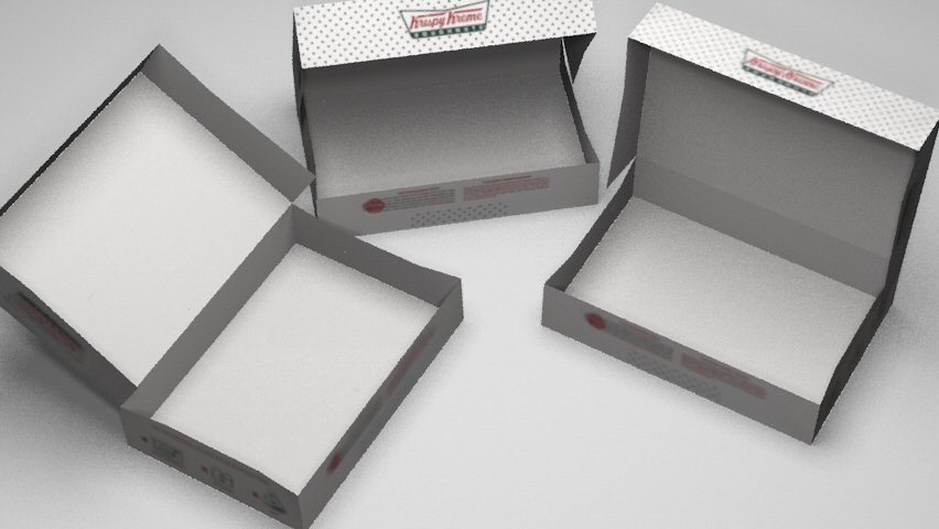 The textures were scanned off an actual 6-donut Krispy Kreme box. However, there's a catch.