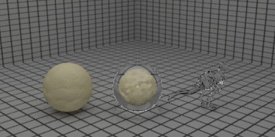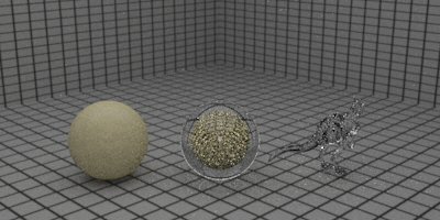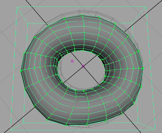 | The next level of complexity was to create imperfections in our donuts procedurally. This is contrary to the "hand perturbed" right-most donut shown above. Now, we intend to break our torus model from a rigid body object to a soft body object. In a rigid body the interrelations between all sub-objects (vertices, faces, etc.) must remain constant. Meanwhile, in a soft body, each sub-object is considered it's own object, creating a particle based system where each vertex is a particle. Putting these particle through a dynamic motion field causes the whole object to become soft, like the dough we are trying to simulate. | |