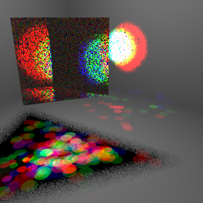There are several issues to resolve when modeling dispersion in a standard ray tracer like PBRT. BTDFs are typically implemented as functions that only take incident angle into account and have a single index of refraction; for dispersion a BTDF also needs to know whether incident light is monochromatic or not, what wavelength(s) it represents, and how to model the refractive function. Rays themselves will also need to have this additional state: whether they are monochromatic and what wavelengths they represent. Finally, I wanted to use the photon map integrator to handle the complex caustic created by gemstones, so this integrator would require dispersion functionality in both photon mapping and actual imaging.