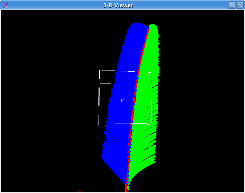 This grammar accounts for forces (F) that, when they exceed a certain random threshold, rotate the feather splines. The result is added irregularity into the feather generation process that improves overall realism. We wrote and OpenGL program to aid us in debugging and visualization our feather geometry, and the following is a screenshot: