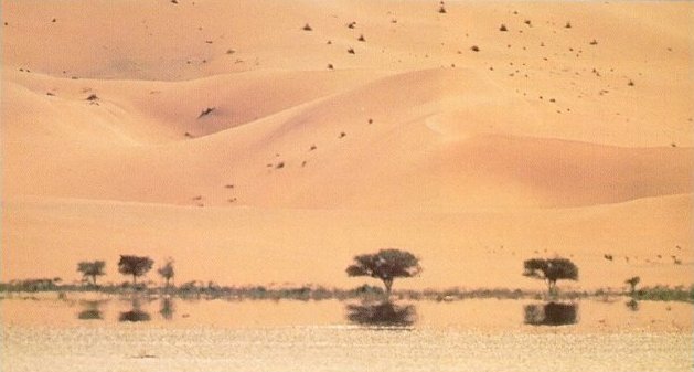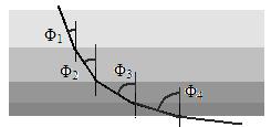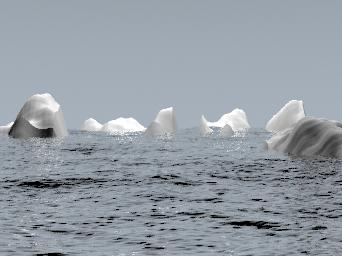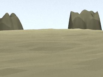 Methods We studied a number of methods to trace rays in non-homogenous media. In each case we assumed that the refractive index is a function of height. (1) Slab method: In this case, the whole scene is divided into a number of horizontal layers, each with a constant index of refraction. Every ray is refracted several times as it passes through the scene. Snell's law is applied to compute the new direction whenever the ray travels from one layer to another. (2) Length method: The drawback to the slab method is that any nearly horizontal ray will have to travel a great distance before it gets refracted. In order to overcome this problem, ray trajectories are recalculated at fixed length intervals. This method is very similar to the slab method, except that the slabs have varying width. (3) Exact method: This implementation traces rays based on an exact analytical solution. Suppose the refractive index (RI) varies with height as follows: The snell's law governing the change in direction of ray is given by: Let θ be the direction of ray in x-y plane. Then Φ = π/2 - θ. Let Φi and Φt be the angle of incidence and refraction respectively at any point on the ray. When given the value of x at any point, y can be obtained by plugging in the appropriate values in the following equation: a = no + m*x b = no*sin(Φo) (4) Euler method: We evaluate the value of x at fixed, equally spaced grid points and find the y for the corresponding x increment. Let xo be the initial value of x and h be the step size (or grid size).Then x at any grid point is given by: The RI at depth/height xn+1 is computed by using equation (1). Then snell.s law is applied to compute the angle of refraction at point(xn+1 , yn+1): Finally the computed angle of refraction is plugged in the following equation to obtain the corresponding y: (5) Runge-Kutta: This is similar to Euler's, but the new y values are computed by considering the ray direction at three intermediate points between (xn,yn) and (xn+1 ,yn+1). Let f(xn, yn) = tan(Φnt) where Φnt is the angle of refraction at the point (xn,yn). As shown before, Φnt for any point is computed using equation (4). We use fourth order runge kutta to compute the new points: k1 = h* f(xn, yn) k2 = h* f(xn + h/2, yn + k1/2) k3 = h* f(xn + h/2, xn + k2/2) k4 = h* f(xn + h, xn + k3) yn+1 = yn + k1/6 + k2/6 + k3/6 + k4/6 Results We examined the five methods above by implementing them in MATLAB and comparing their accuracies. Based on this study we chose two methods, slabs and Euler's, to implement in PBRT. The following images were rendered using the slab method. In addition, we implemented a handy MATLAB debugging script to show us the path of the rays. All the heightfields (sand, water, icebergs, and mountains) were generated using a diamond-square fractal algorithm. Inferior mirages This is the classic mirage example. In an inferior mirage, rays passing close to the horizon get reflected upwards through total internal reflection. What is often described as pools of water in the desert is in fact the reflection of the blue sky onto the ground. Because of the way light refracts in this type of mirage, the landscape appears to sink.