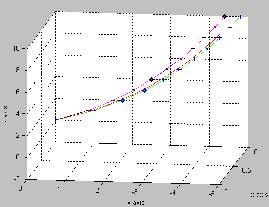 The associated colors are: Magenta - exact method Green - Euler method Black - Runge-Kutta Blue - Slab method Red - Length method ![]() Parameter values(n=10,h=0.5) ![]() Observations and conclusion One of our biggest challenges was figuring out how to incorporate curved rays into PBRT. Early attempts included volumetric modeling, new camera types, and a new distribution field. We discovered that by breaking up our ray into small segments (each of which is linear) we could avoid extensive modifications to the PBRT core. We also ran into problems when placing objects in the scene. Mirages are inherently dependent on having precise geometry, and many frustrating attempts were made to place objects and the camera at the correct distance and orientation. This ended up being a trial-and-error process. If we had more time, it would have been interesting to implement a more sophisticted model for heat distortion. Currently our system only handles index of refraction that varies with height. By incorporating a three dimensional index of refraction, we can model distortion from arbitrary heat sources (such as a stove top or car exhaust). Division of labor Since the two parts of this project required implementing the same algorithms twice (in PBRT and MATLAB), both partners contributed to all sections. However, Pankhudi focused more on the MATLAB and the mathematical aspects and Itai focused more on the PBRT sections. While the final PBRT implementations ended up being compact, considerable effort was spent on the failed attempts mentioned above. References [1] M. Berger, T. Trout. "Ray tracing mirages". IEEE Computer Graphics and Applications, 11(5), pp. 36-41, May 1990. [2] Seron, F.J. "Visualizing sunsets through inhomogeneous atmospheres". Computer Graphics International (CGI'04). 2004. [3] J. Stam, E. Languenou, "Ray tracing in non-constant media". Proceedings of Rendering Tecniques '96, pp. 225-234, 1996. | ||||||||||||||||||||||||||||||||||||||||||||||||||||