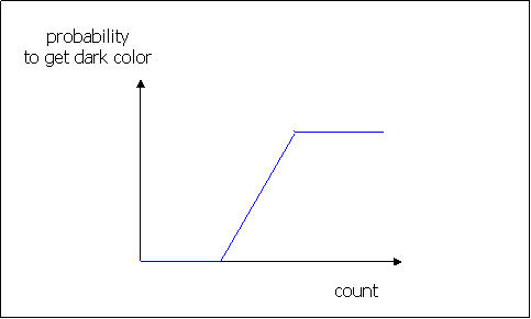 To give more variety on the color of stain, two different colors were used - normal color (0.25, 0.1, 0.1) and darker color (0.15, 0.1, 0.1). Each sphere randomly choose darker color. The probability increases as count increases, to give a darker color on dense stain region.