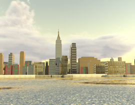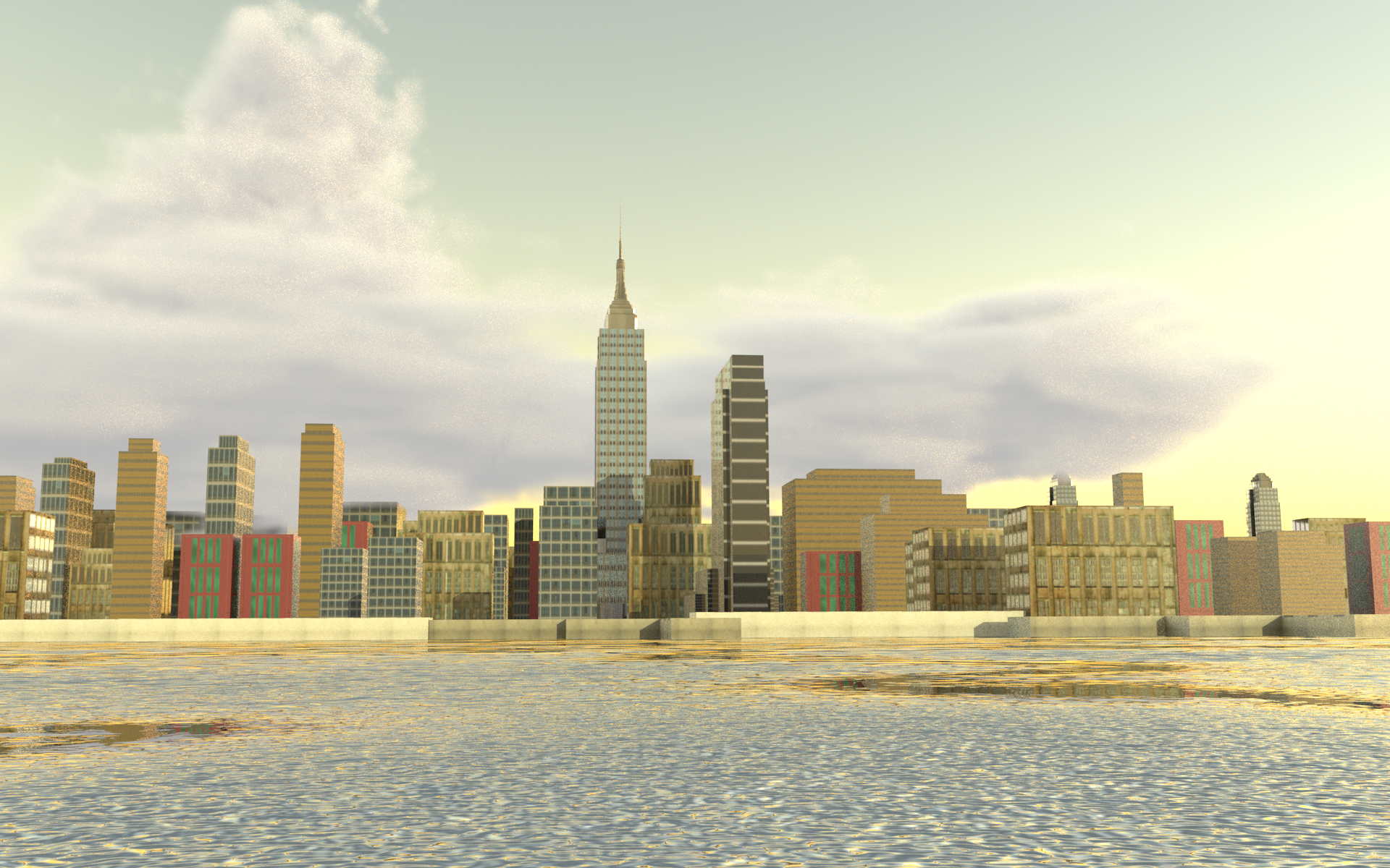 Nico and Michael procedurally generated clouds and modeled the effect of Mie scattering in the atmosphere to generate realistic urban skies. Light scattering within clouds is approximated by single scattering volumetric rendering with an additional emissive term. [