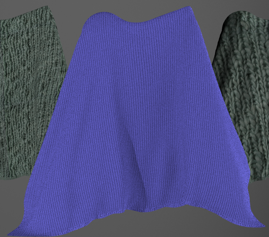 Stefan modeled the basic stitch of an afghan-like weave and sampled the spatially varying brdf of a cloth constructed using this weave by using pbrt to shoot a large number of rays at the weave geometry. He then used this brdf to efficiently render a large sheet of cloth represented using only macro-geometry (no weave). [