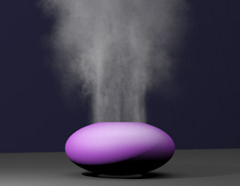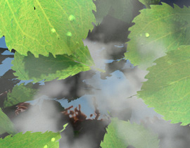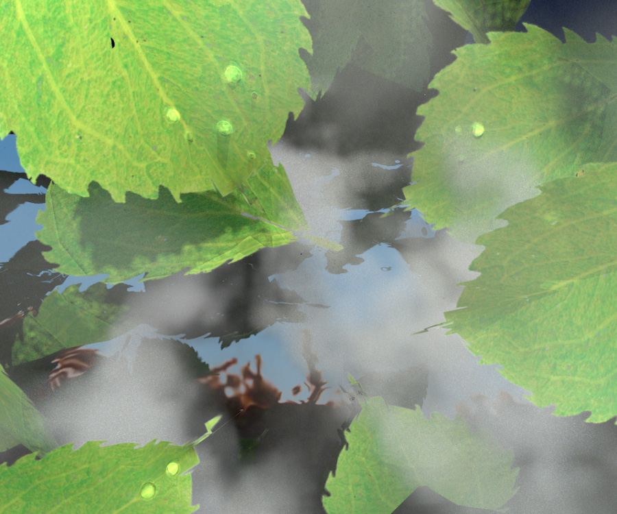 David implemented volumetric photon mapping to produce this scene containing procedurally-generated volumetric fog enveloping dew-laden leaves of a plant. [