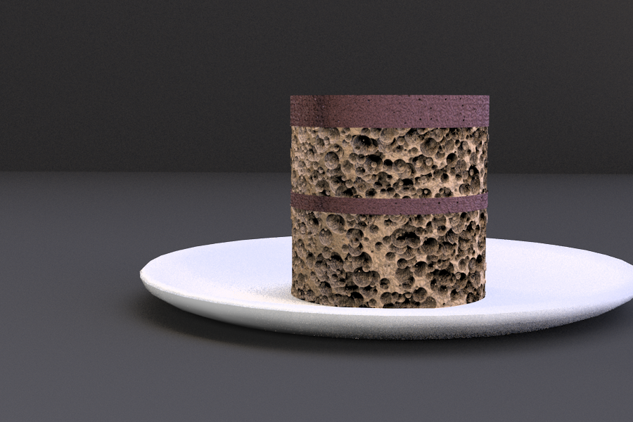 Derek and Young Min extended PBRT's shape system to include a micro-structure layer of fractally grown spherical pores. Although they were originally interested in modeling porous foods such as cake, they found their system was also capable of generating convincing stone and concrete. [