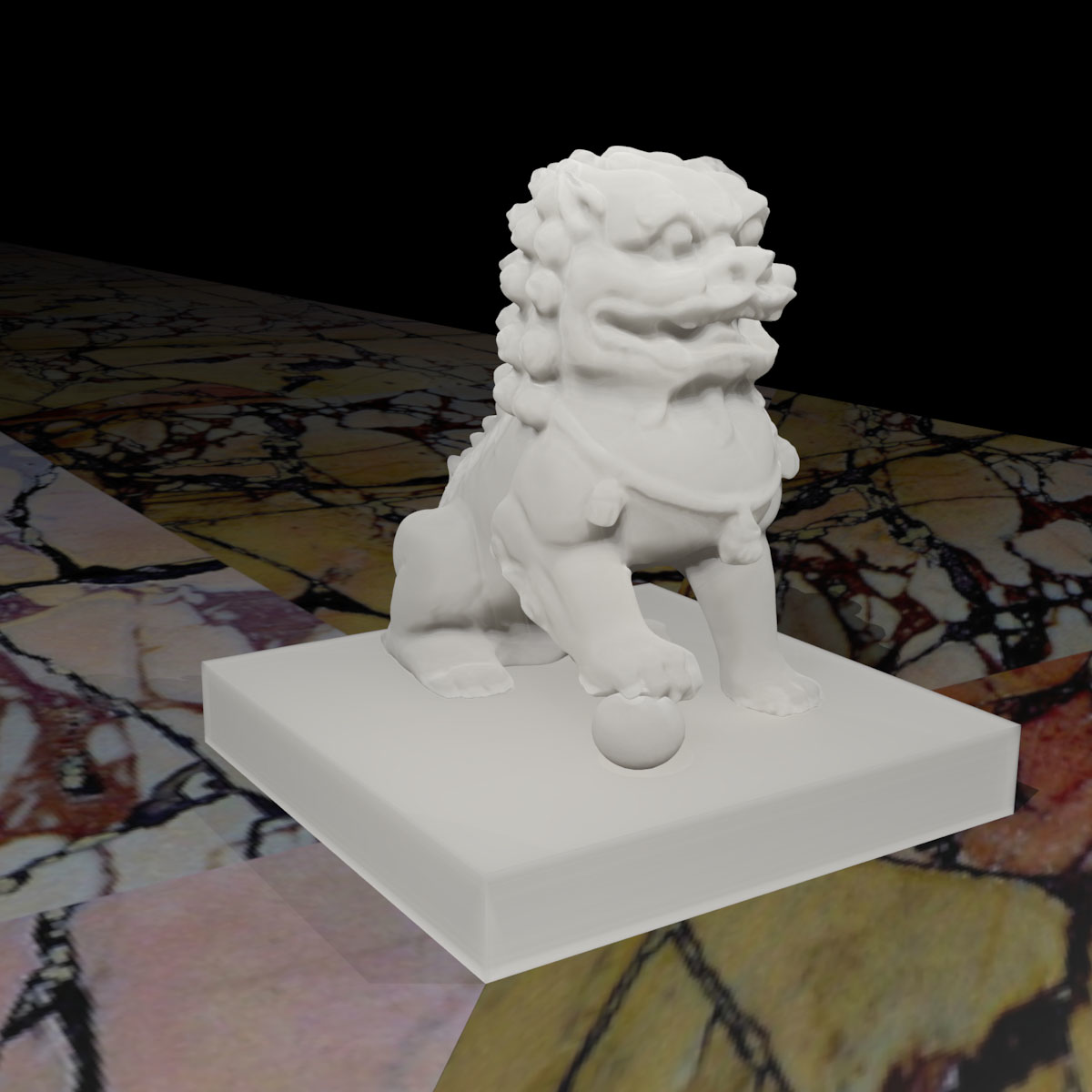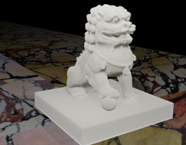 Zinnia and Peter implemented single and multiple subsurface scattering to produce this image of ShiShi, a mythical lion often placed in front of palaces, temples, government offices, and home entrances in China. [