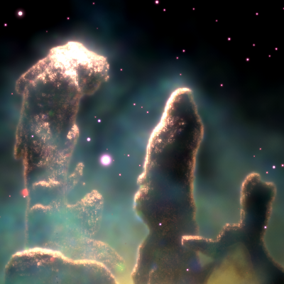 Sergey and Edward rendered this fantastic picture of the Eagle Nebula. They used volumetric photon mapping with multiple scattering in a non-homogeneous medium to simulate the emissive properties of the nebula. [
