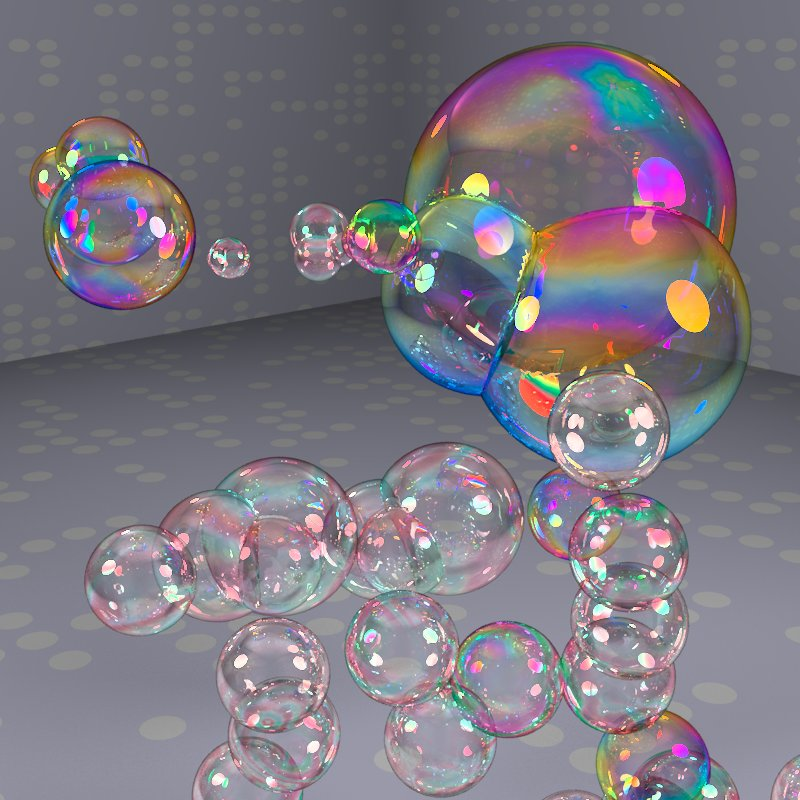 David and Simon devised a procedural algorithm for creating physically accurate soap bubble clusters. They also implemented thin-film interference to simulate the color variation across the bubbles' surface. [