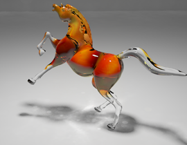 Yi-ting implemented a new material class and modified the photon mapping integrator to produce this image of a horse made of photosensitive glass. The absorption properties of the material are procedurally generated by modified Perlin noise functions. [