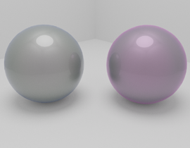 Nikhil investigated multi-layer and single thin-film interference to model the iridescence of pearls. In the image at left, the pearl on the left has no interference component and the pearl on the right is rendered using single thin-film interference. [