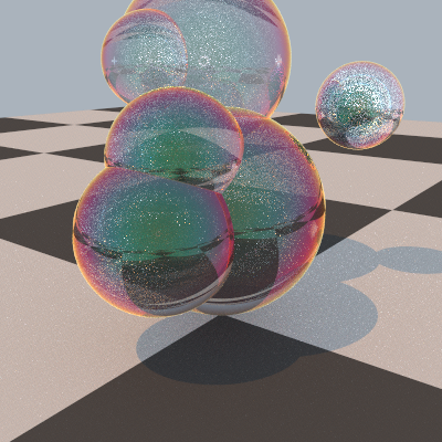 Jun and Zhenzhi added a lens model to PBRT and simulated thin film interference to render soap bubbles artistically.