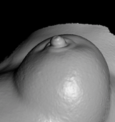 The left breast of Michelangelo's statue of NightMay Allen In a letter to the editor of the New England Journal of Medicine, oncologist James Stark and art historian Jonathan Nelson have hypothesized that several visually obvious lumps and depressions on the left breast of Michelangelo's statue of Night represent an advanced stage of female breast cancer. Since Marc Levoy's digitized this statue as part of the Digital Michelangelo Project, they asked for his help taking measurements from our computer model. Marc and May Allen did the measurements together. Click on the photo at left to see May's writeup, also linked into the "Other interesting body parts" photographic essay of the Digital Michelangelo Project web pages. |