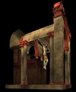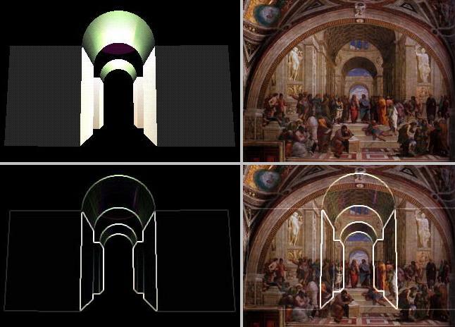 Dennis modeled Masaccio's Temple in Alias. Using the painting as a template, he carefully modeled the geometry by hand to match the painting. His model was fairly large, so he's still putting together / rendering the final animation...