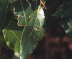 When the leaf is illuminated from the front a bluish hue mingles with the