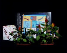 | CD cases and poster behind plants