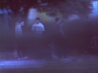| Students behind bushes