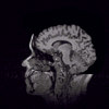 Description: MR study of head with skull partially removed to reveal brain