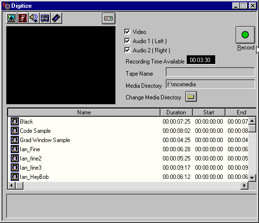 You must then immediately name your digitized video clip -- the new clip will appear named Untitled