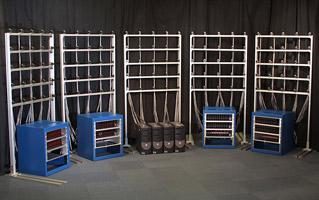 The entire array: camera tiles, processing boards, and the four PCs required to run the system.