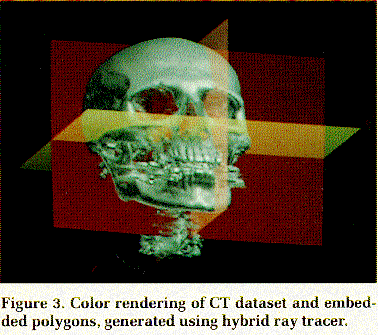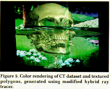 Figure 5. Color rendering of CT dataset and textured polygons, generated using modified hybrid ray tracer. |