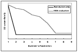 cameras. Error due to imager resolution is nearly minimized by only two