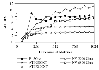 Utilizing graphics hardware for general purpose numerical computations has become a topic of considerable interest. The implementation of streaming algorithms, typified by highly parallel computations with little reuse of input data, has been widely explored on GPUs. We relax the streaming model's constraint on input reuse and perform an in-depth analysis of dense matrix-matrix multiplication, which reuses each element of input matrices O(n) times. Its regular data access pattern, and highly parallel computational requirements suggest matrix-matrix multiplication as an obvious candidate for efficient evaluation on GPUs, but surprisingly we find that even near-optimal GPU implementations are pronouncedly less efficient than current cache-aware CPU approaches. We find that the key cause of this inefficiency is that the GPU can fetch less data and yet execute more arithmetic operations per clock than the CPU when both are operating out of their closest caches. The lack of high bandwidth access to cached data will impair the performance of GPU implementations of any computation featuring significant input reuse.