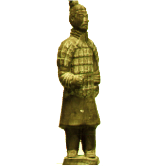 | Light field deformation enables an animator to interactively deform photo-realistic objects. The left figure shows an image of a light field of a toy Terra Cotta Warrior. The middle image shows a view of the same light field after applying a deformation, in this case, a twist to the left. Notice that his feet remain fixed and his right ear now becomes visible. The right image shows the warrior turning to his right. | |||