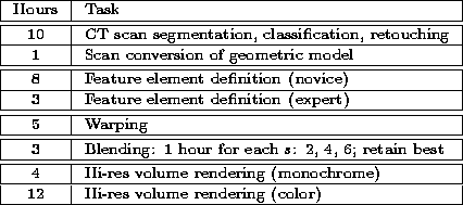 The human and orangutan volumes shown in figures 5a and 5c were warped using 26 element pairs to produce the volumes of figures 5b and 5d at the midpoint of the morph. The blended middle morph appears in figure 5e.