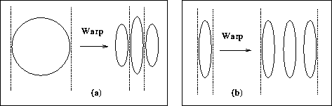 Figure 2: 2D warp artifacts (not to scale). (a) shows the result of