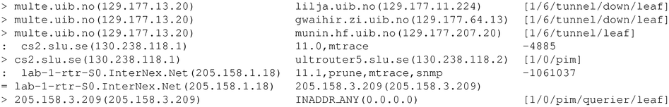 Table 4.1: Raw tunnel data from mwatch. The MBone topology