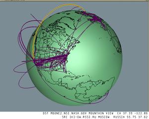 The deployment of a system such as the MBone should be a careful balance between distribution efficiency, resource availability, redundancy in case of failure, and administrative policy. Our hope was that this visualization system would help ISPs and administrators of campus networks cope with a growing infrastructure by illustrating where optimizations or more appropriate redundancies could occur within and across network boundaries. When Bill Fenner, who is heavily involved with MBone deployment, saw the initial 3D visualization in February 1996, he was galvanized to encourage many administrators of suboptimal tunnels to improve their configuration. Although he was familiar with the textual data, the geographic visualization highlighted specific problems in the distribution framework that he had not previously noticed.