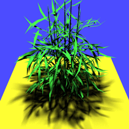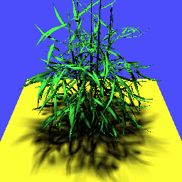Figure 1. A plant rendered using layered attenuation maps (top), rayshade (middle), and coherence-based raytracing (bottom). |