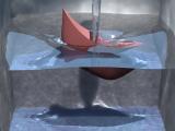 triangulated surface. This allows for the robust interaction of cloth and shells with thin sheets of water. The proposed method works for both rigid body shells and for