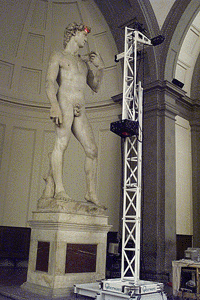 3D scanning produces large datasets. During our year in Italy we acquired 250 gigabytes of raw data. Over the next year or so, we will clean up this data, edit it, and assemble it to create 3D geometric models with color. We estimate that these models will occupy another 250 gigabytes. Since the technology for assembling scans into models is immature, we consider it important that scholars continue to have access to the raw data. Thus, the total size of our archive will be about 500 gigabytes. Although this database is currently the largest of its type in the world, we believe that with continued development and commercialization of 3D digitization technologies, archives of this size will soon become commonplace, and will even grow in size.