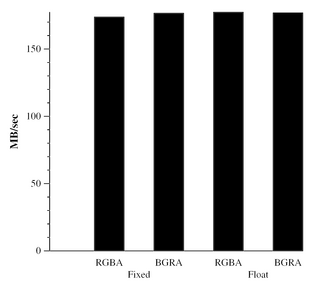 Note: Both graphs represent the same test. One shows MPix/sec and one reports GB/sec.