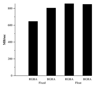 Note: Both graphs represent the same test. One shows MPix/sec and one reports GB/sec.
